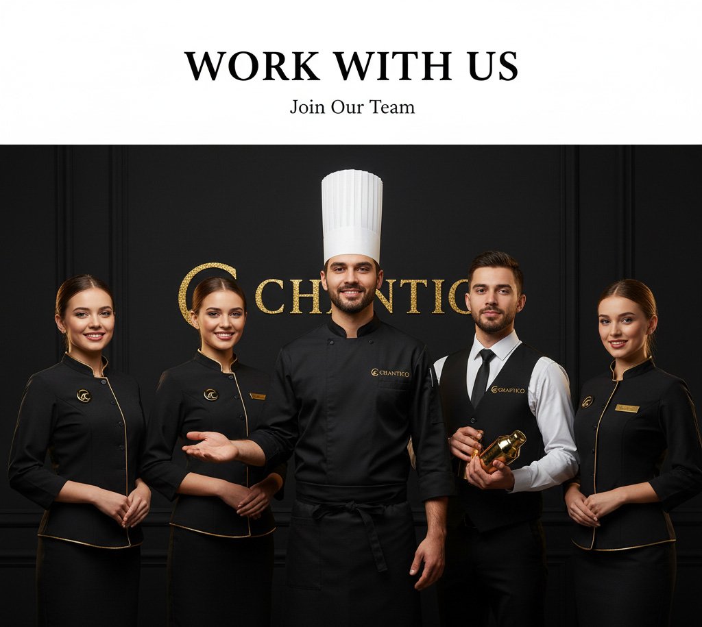 We are always looking for passionate and talented people to join our team — bartenders, chefs, and professionals open to collaboration. If you’re interested, please send your CV to luigi@restaurante-chantico.com or fill out our application form. We look forward to welcoming you on board!